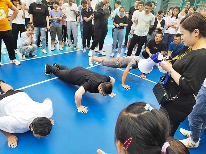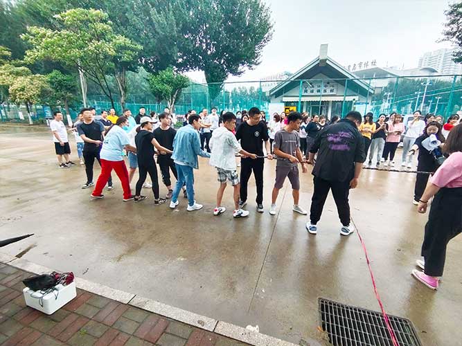 哨聲響起,比賽一觸即發(fā)!大家團結(jié)一致努力拼搏著!有的緊握麻繩,咬牙使勁;有的扎穩(wěn)腳步,不可撼動;有的身體向下傾斜,鉚勁拉繩……大家的勁往一處兒使,心往一處兒聚。全神貫注的眼神、奮力拉扯的身影,無不彰顯了員工們的意志。