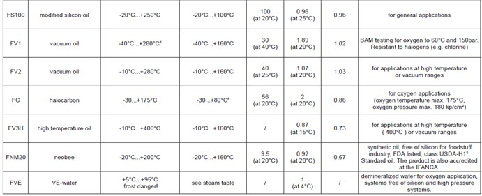 可提一定范圍的物質(zhì)如壓力傳送液體,適用于特殊工作。請參考下表和恰當(dāng)?shù)臄?shù)據(jù),以獲得詳細信息。